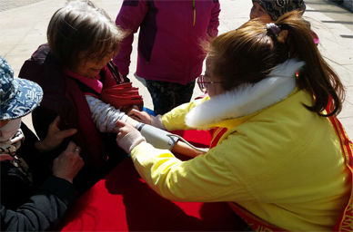太阳送温暖,肤康医生捧热情,沈阳市民接温情,医民一家亲。